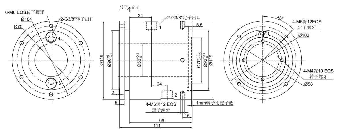 GJ2050ϵÁÐ (ÖпÕ50mm, 2½ø2³ö, ÖÐ¿ÕÆøÒºÐýת½ÓÍ·,Æø»¬»·£¬ÒºÑ¹»¬»·)